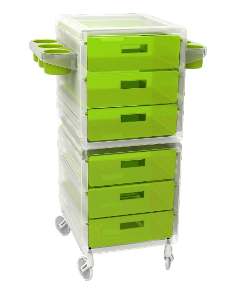 Тележка парикмахерская "MY" - закрытого типа на бесшумных колесиках "NO HAIR". Тележка выполнена из прочного пластика. Тележка оснащена выдвижными ящиками и съемными боковыми полками.