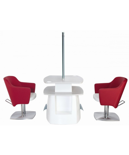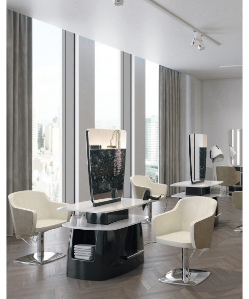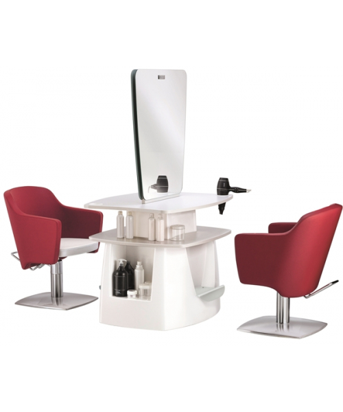 Зеркало парикмахерское "STYLO 2P" двустороннее - зеркало с артикулом С-60002502 оснащено тумбой с ламинированными столешницей и полкой, а также металлическими подставками под ноги. Каркас тумбы выполнен в пластике. Крепление к стене.
