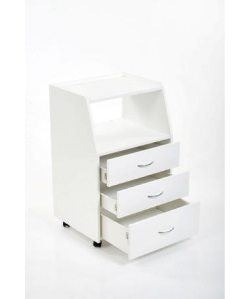 Тумба мастера "БЬЮТИ" - комплектуется тремя удобными ящиками и открытой полкой, что позволит мастеру без труда убирать необходимые инструменты.