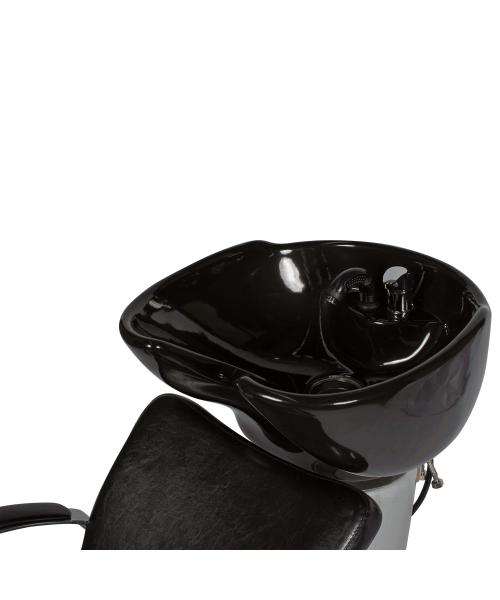Модель укомплектована керамической раковиной средней глубины с механизмом наклона, который гарантирует индивидуальное удобство каждому клиенту во время процедур. Изменить угол наклона можно одним движением, не прерывая рабочий процесс. По желанию Вы можете выбрать другую раковину: среднюю черного цвета или глубокую белую или черную. Раковина установлена на надежное основание из ударопрочного пластика. К нему же прикреплен металлический кронштейн для кресла.