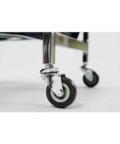 Основа - хромированный каркас на четырех колесах.