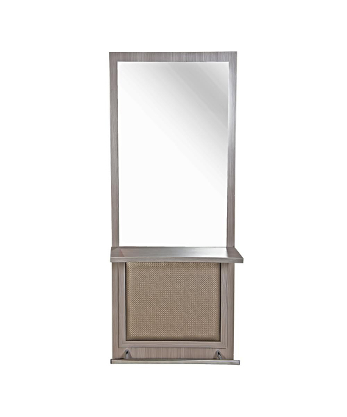 В парикмахерское зеркало Мона установлена столешница на всю ширину, над столешницей размещено зеркало.
